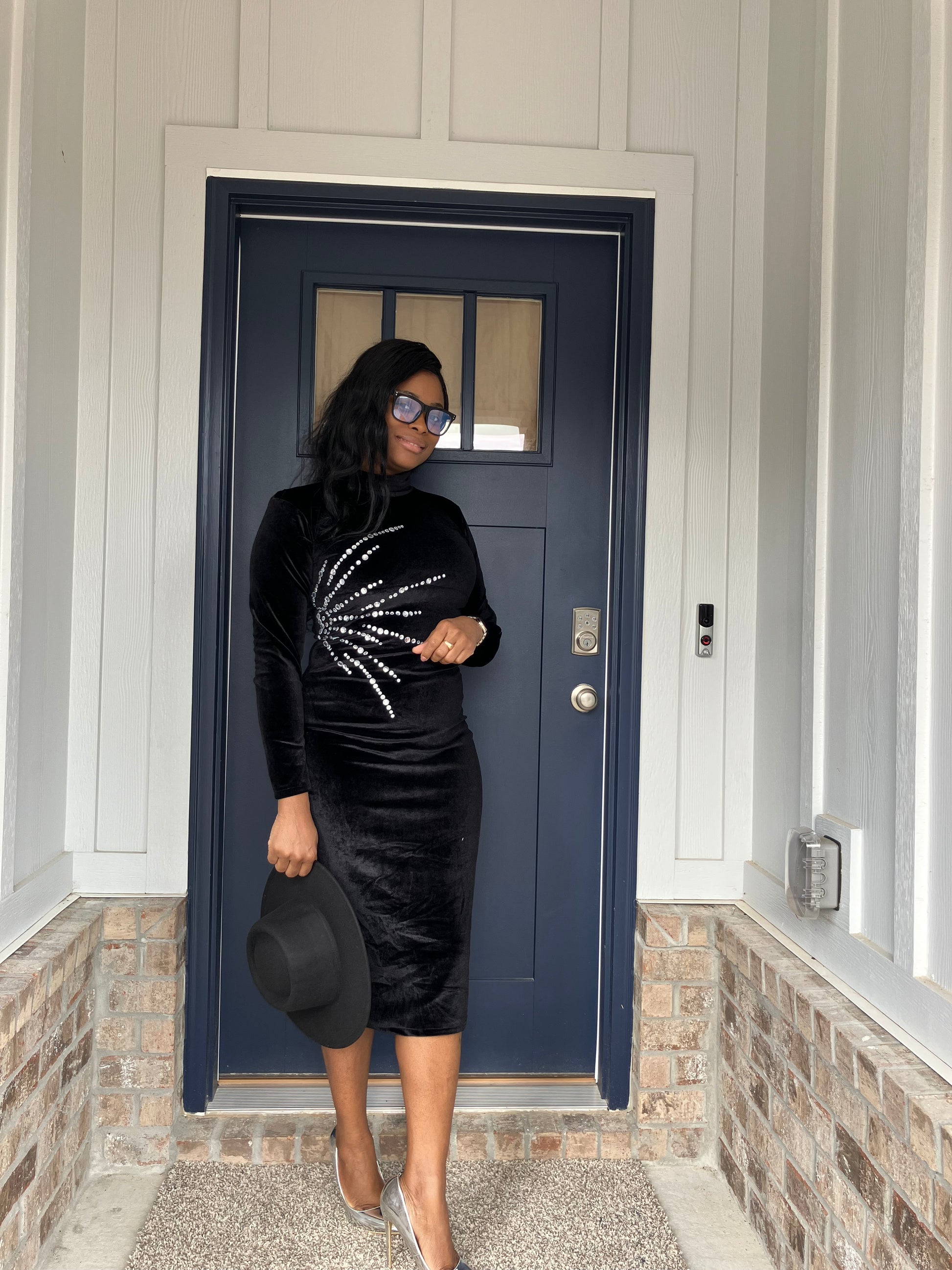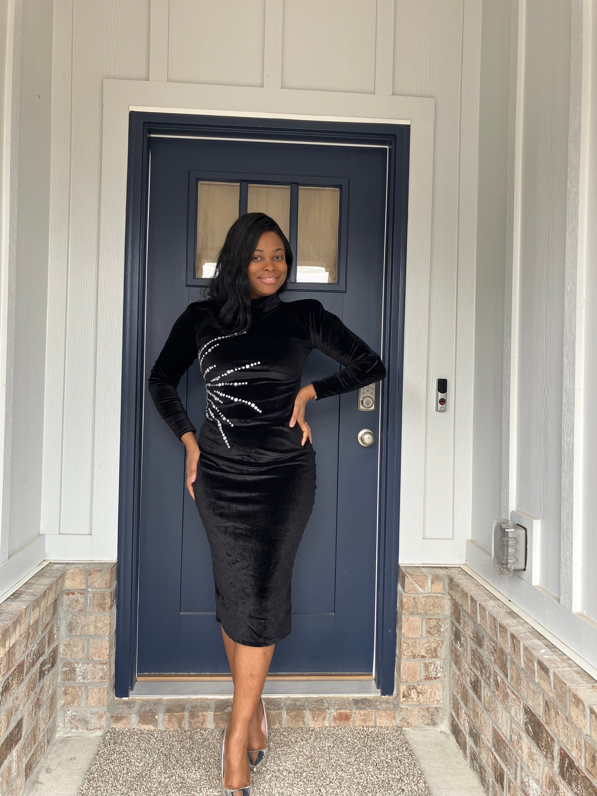 This classic velvet dress combines timeless elegance with modern detailing. The rhinestone accents at the side add a touch of sparkle, making it perfect for any special occasion. With its luxurious fabric and stylish design, the ADAH dress is a must-have for any wardrobe. Upgrade your look with this sophisticated piece.