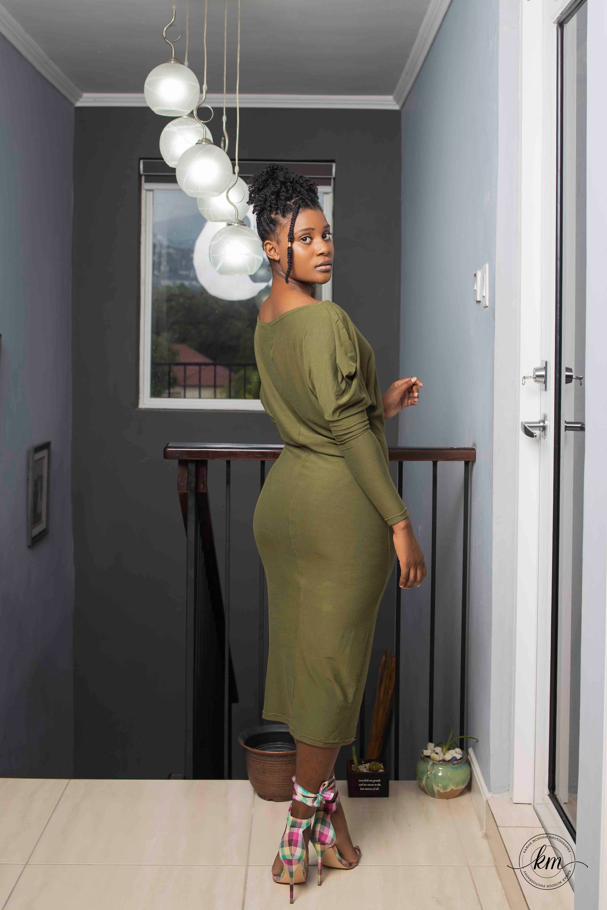 A beautiful dress with a draped bodice and form fitting bottom half. This dress can be worn at many different occasions